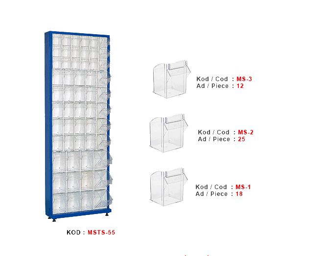 55 Plastik çekmeceli kutulu, metal gövdeli stand