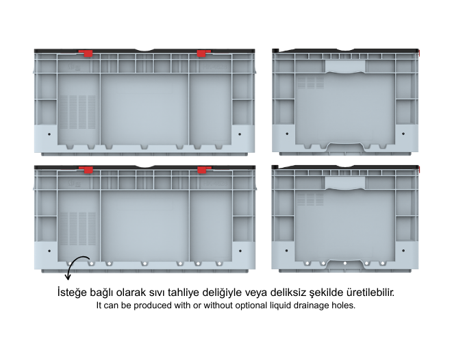 - İsteğe bağlı dört yönünde yan alt yüzeylerinde sıvı tahliye delikleri açık üretilebilir.