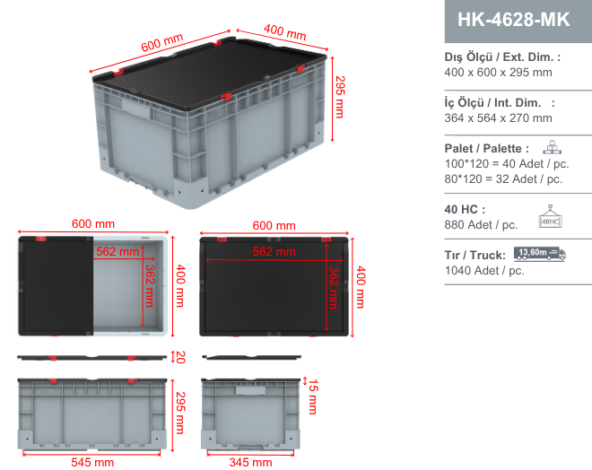S-HK-4628-MK otomotiv kasası, dayanıklı yapısı ve işlevsel tasarımı sayesinde otomotiv parçalarının güvenli şekilde saklanması ve organize edilmesi için mükemmel bir çözümdür. Ayrıca lojistik kullanımlarında da yüksek performans gösterir ve iş süreçlerine pratiklik katar. Bu ürün, otomotiv sektörü ve ilgili endüstrilerde profesyonel depolama arayanlar için ideal bir tercihtir.