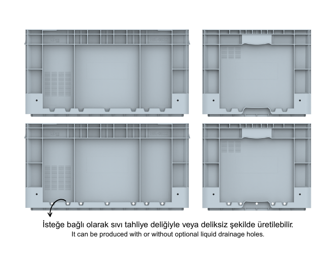 • İsteğe bağlı dört yönünde yan alt yüzeylerinde sıvı tahliye delikleri açık üretilebilir.